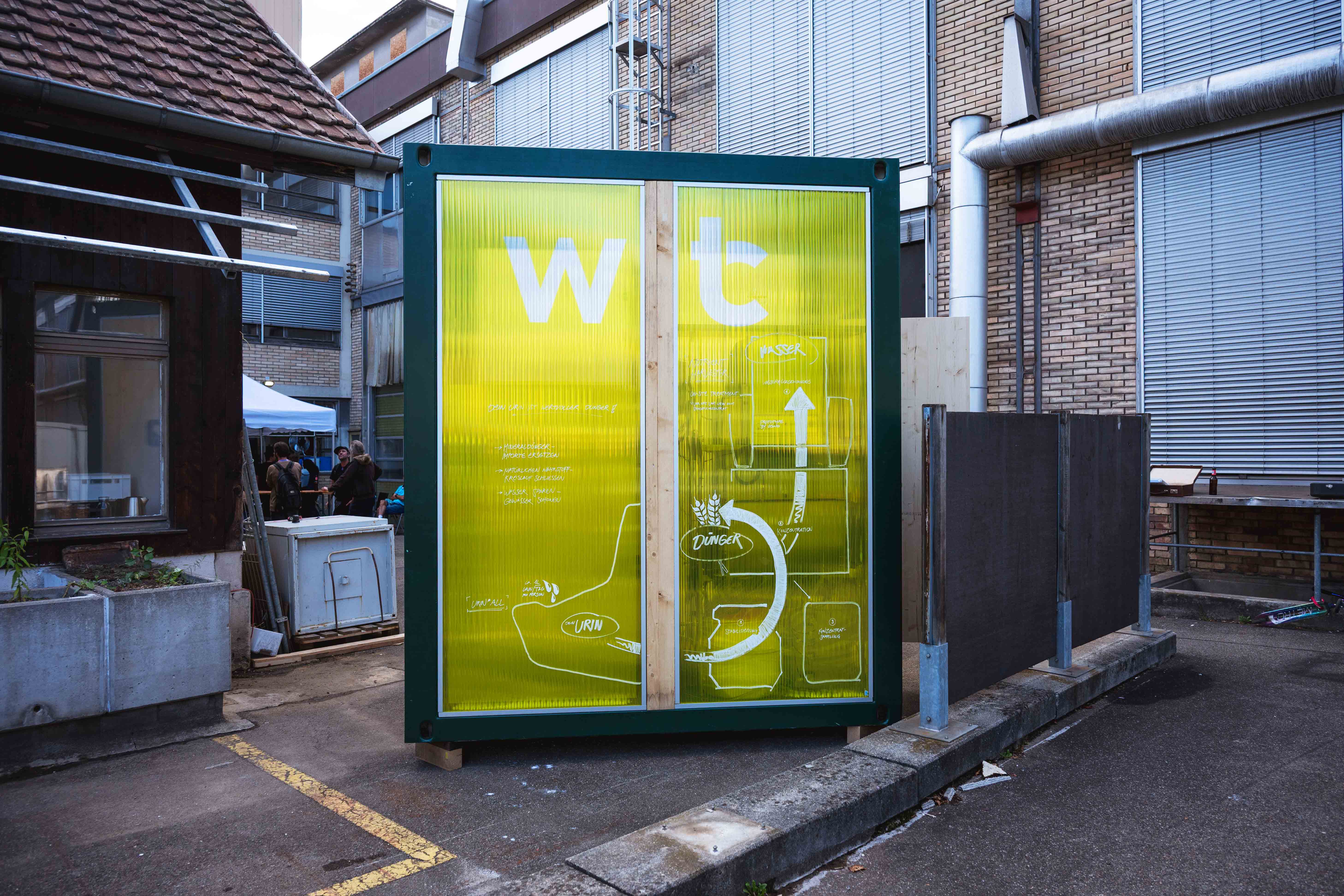 Vielleicht hast du es schon gesehen? Der erste Teil von unserem zirkulären WT (eine Wertstoff-Toilette) ist in Betrieb! Ausgestattet ist sie mit einem neuen Urin-all, ein Pissoir für alle Geschlechter. Im Gegensatz zu einem konventionelle WC (Water Closet) funktioniert diese ganz ohne Wasser.
